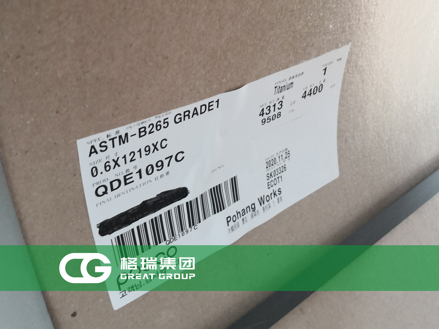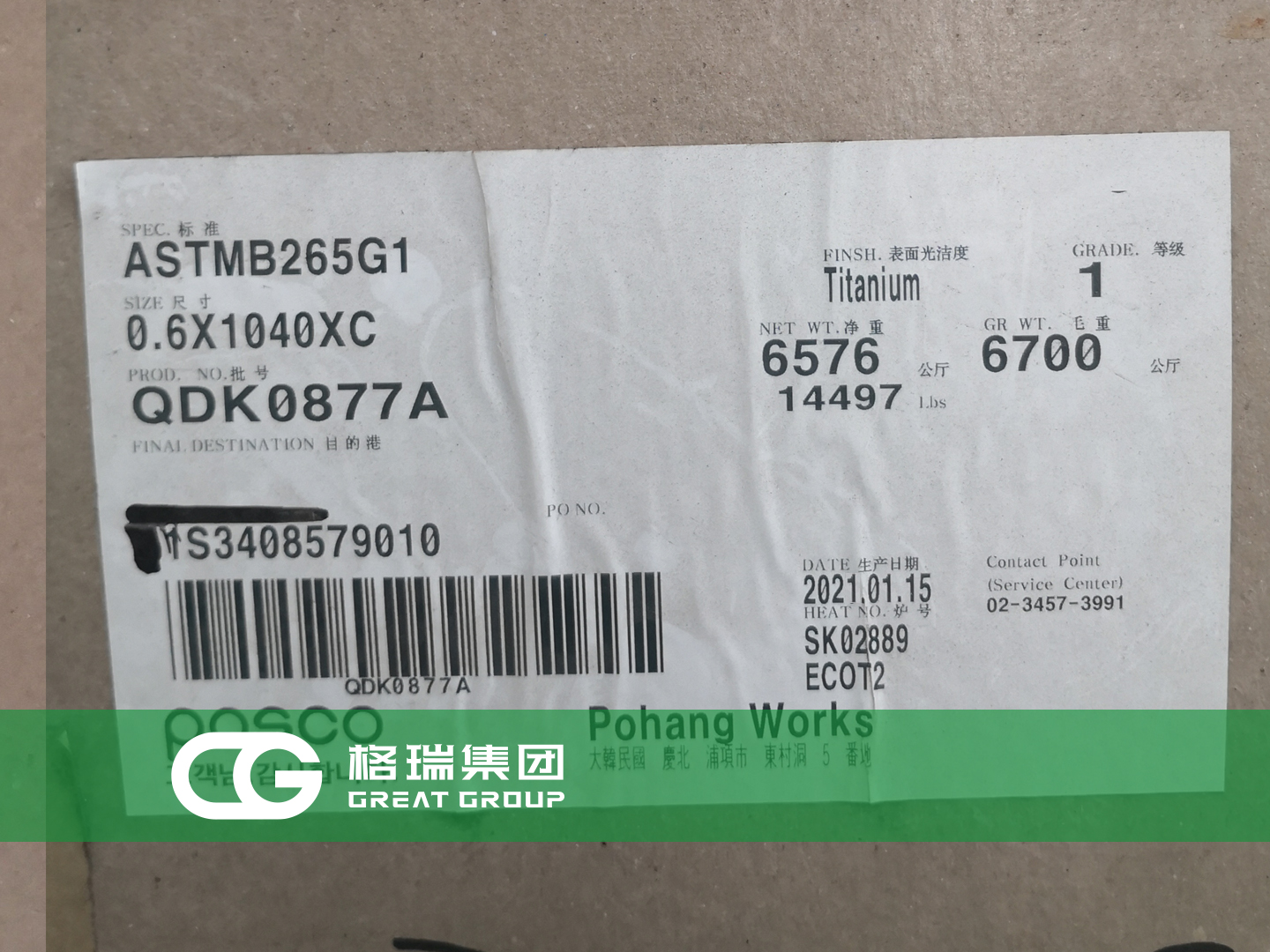 文章標題:格瑞集團:韓國浦項鈦板到貨 板式換熱器專用